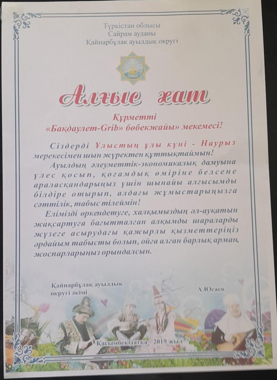 «Бақдаулет-Grib» бөбекжайы ЖШС балабақшасы